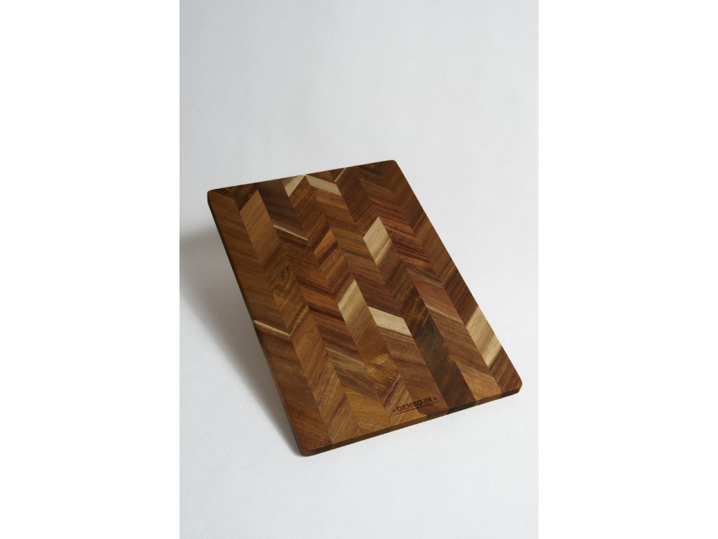 Akáciové drevo je pevné, trvácne a odolné voči opotrebeniu. Mozaikové kladenie jednotlivých kúskov dreva vytvára zaujímavý vzor v rôznych hnedých a medených odtieňoch – každá doska je tak jedinečná. Vďaka tomuto vzhľadu môžete denko využívať nielen ako pracovnú dosku, ale aj ako efektný podklad na servírovanie syrov, tapas, nakrájaného mäsa či ďalších dobrôt priamo na stôl.