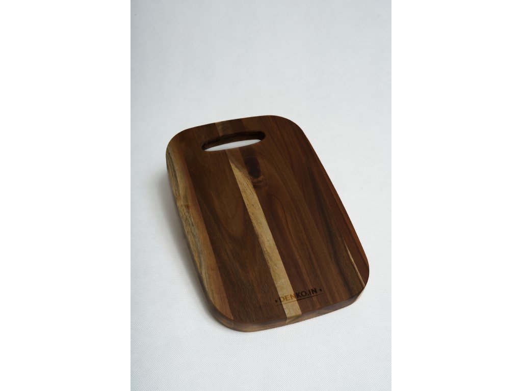 Akáciové drevo vyniká svojou pevnosťou, trvácnosťou a výraznou prírodnou kresbou. Kombinácia tmavších a svetlejších tónov robí z každej dosky originálny kus, ktorý pôsobí na linke aj pri servírovaní veľmi esteticky. V hornej časti sa nachádza praktický otvor na úchyt – uľahčuje prenášanie, ale aj zavesenie dosky na háčik či lištu v kuchyni.