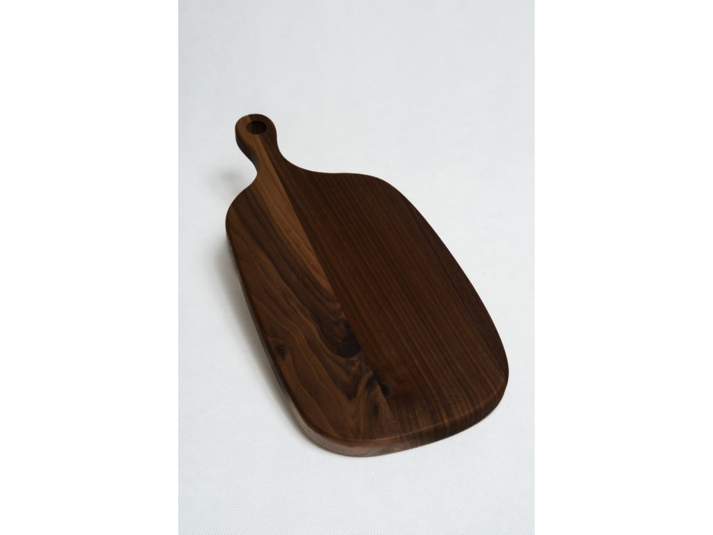 Orech patrí medzi tvrdé a odolné dreviny, takže doska dobre znáša každodenné používanie – krájanie mäsa, zeleniny, ovocia či chlebíka. Vďaka praktickej rukoväti s otvorom sa ľahko prenáša, zavesí na háčik a je vždy poruke. Okrúhle línie a jemne zaoblené hrany z nej robia nielen pracovnú plochu, ale aj štýlovú servírovaciu dosku na syry, snacky alebo menšie občerstvenie pre hostí.